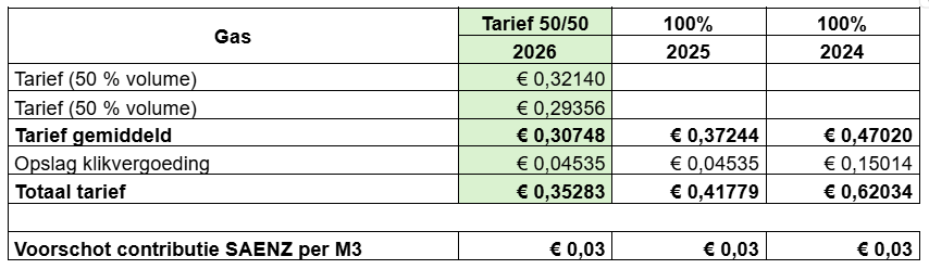 Voor het kalenderjaar 2026 was in 2024 al een vaste prijsafspraak voor 50% van het volume. De overige 50% van het volume 2026 is in november 2025 ingekocht tegen een vastgeklikt tarief.